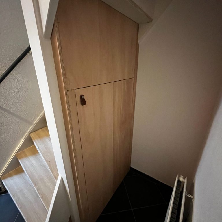 De ruimte onder de trap is zo'n plek waar altijd spulletjes rondzwerven. Hiermee is alles uit het zicht en ligt het geen stof meer te happen.