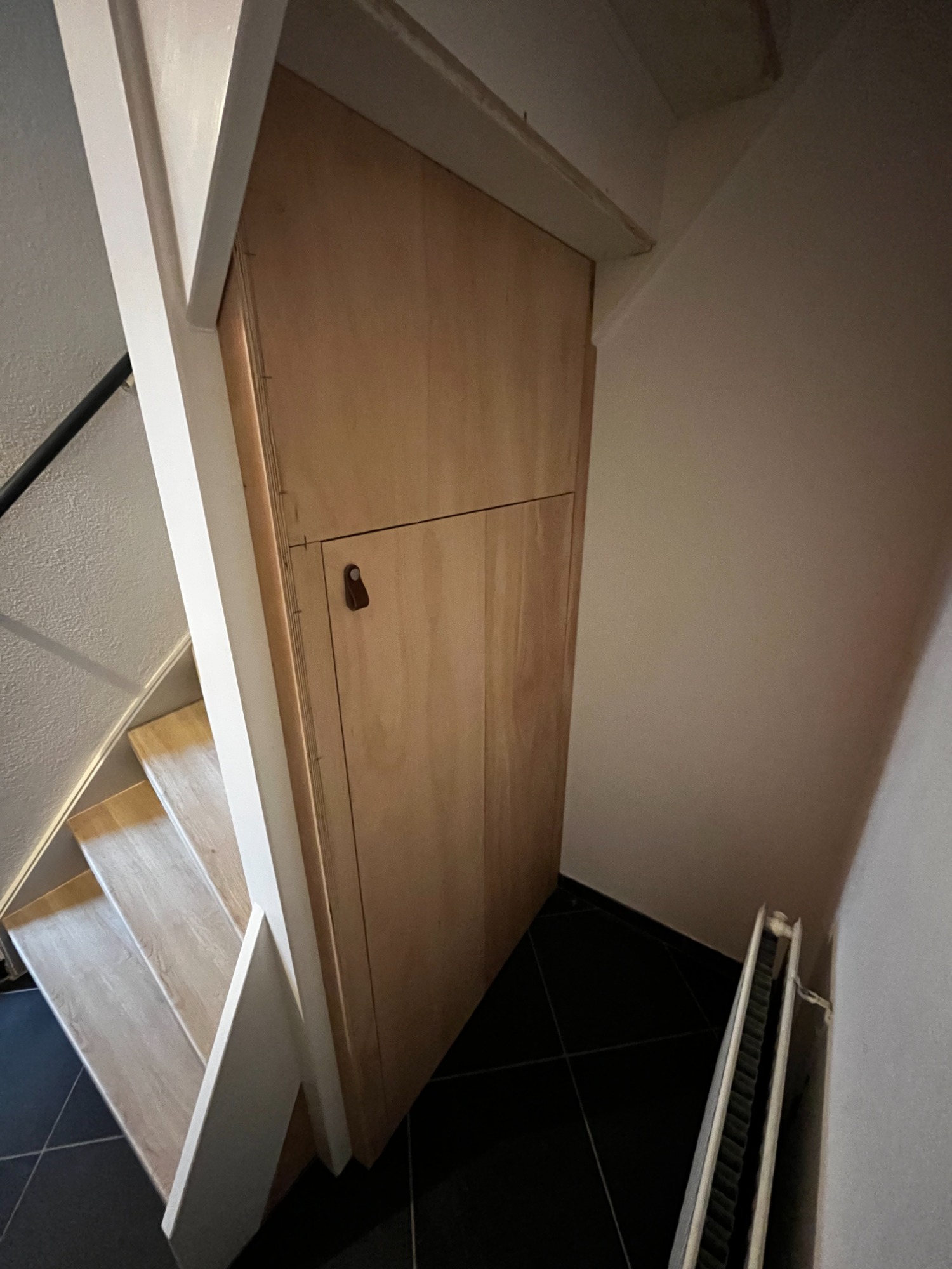 De ruimte onder de trap is zo'n plek waar altijd spulletjes rondzwerven. Hiermee is alles uit het zicht en ligt het geen stof meer te happen.